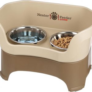 Neater Feeder Deluxe Mess Proof Dog Bowls Elevated for Large Dogs – Made in USA – No Spill Raised Dog Food Bowl Stand w/Leg Extensions – Stainless Steel Dog Food and Water Bowl Set – Cappuccino
