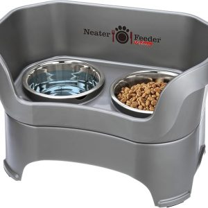 Neater Feeder Deluxe Mess Proof Dog Bowls Elevated for Large Dogs – Made in USA – No Spill Raised Dog Food Bowl Stand w/Leg Extensions – Stainless Steel Dog Food and Water Bowl Set – Grey