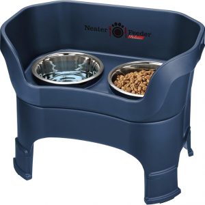Neater Feeder Deluxe Mess Proof Dog Bowls Elevated for Large Dogs – Made in USA – No Spill Raised Dog Food Bowl Stand w/Leg Extensions – Stainless Steel Dog Food and Water Bowl Set – Dark Blue