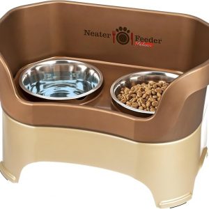 Neater Feeder Deluxe Mess Proof Dog Bowls Elevated for Large Dogs – Made in USA – No Spill Raised Dog Food Bowl Stand w/Leg Extensions – Stainless Steel Dog Food and Water Bowl Set – Bronze