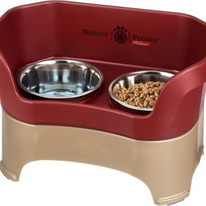 Neater Feeder Deluxe Mess Proof Dog Bowls Elevated for Large Dogs – Made in USA – No Spill Raised Dog Food Bowl Stand w/Leg Extensions – Stainless Steel Dog Food and Water Bowl Set – Red