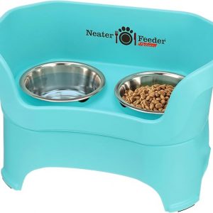 Neater Feeder Deluxe Mess Proof Dog Bowls Elevated for Large Dogs – Made in USA – No Spill Raised Dog Food Bowl Stand w/Leg Extensions – Stainless Steel Dog Food and Water Bowl Set – Teal