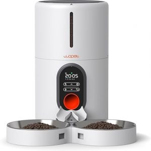 WOPET Automatic Cat Feeder 2 Cats – Automatic Cat Food Dispenser with Programmable 1-6 Meals & 2 Stainless Bowls, Automatic Dog Feeder with Desiccant Bag & 10s Meal Call for Cat and Dog