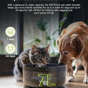 Wireless Dog Water Fountain with 6 Filters, Battery Operated Cat Dog Water Dispenser with Motion Sensor, 237 oz/ 7L Cordless Fountain Water Bowl with 3 Work Modes(Replacement Filter for 1.5 Months)