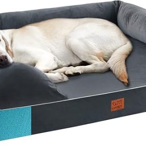 Orthopedic Dog Bed for Extra Large Dogs – XL Washable Dog Couch Bed, Memory Foam Pet Sofa Bed with Waterproof Liner and Removable Zipper Cover, Non-Slip Bottom, Grey, 44x34x10inches