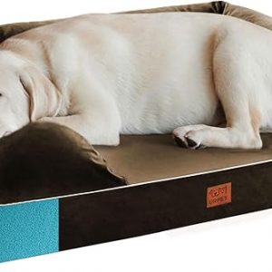 Orthopedic Dog Bed for Extra Large Dogs – XL Washable Dog Couch Bed, Memory Foam Pet Sofa Bed with Waterproof Liner and Removable Zipper Cover, Non-Slip Bottom, Brown, 44x34x10inches