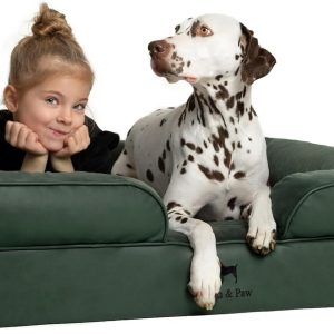 NOAH & PAW Large Dog Bed, 35x25x11 Inch, Orthopedic Dog Beds, Eggshell Memory Foam Infused with Cooling Gel, Inner Cover, Waterproof, Machine Washable (Faux Leather Sofa Collection)