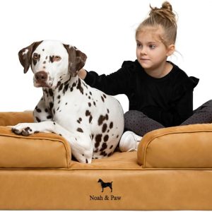 NOAH & PAW XL Dog Bed, 45x35x11 Inch, Orthopedic Large Dog Beds, Eggshell Memory Foam Infused with Cooling Gel, Inner Cover, Waterproof, Machine Washable (Faux Leather Sofa Collection)