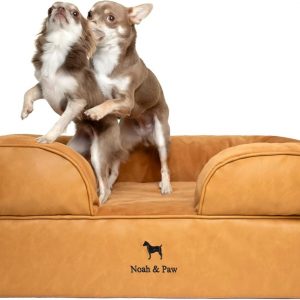 NOAH & PAW Dog Bed, 28x23x11 Inch, Orthopedic Dog Beds for Medium Size Pets, Eggshell Memory Foam Infused with Cooling Gel, Inner Cover, Waterproof, Machine Washable (Faux Leather Sofa Collection)