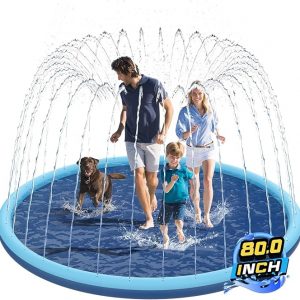 Non-Slip Splash Pad for Kids and Dog, 80″ Extra Large Baby Play Mat, Dog Pool Toys, Thicken Sprinkler Pool Summer Outdoor Water Toys for Ages 3-12 Boys Girls, Parent-Kids & Games Fun Backyard (Blue)