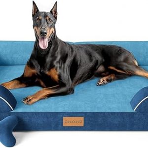XXL Dog Bed for Extra Large Dogs, Giant Orthopedic Dog Bed with Cooling Gel Memory Foam, Waterproof Pet Bed with Removable Washable Cover, 53″ Pet Sofa Bed Dutch Velvet with Bone Toy, Navy Blue