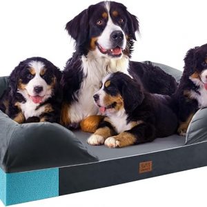 XXL Orthopedic Dog Bed – Washable Dog Couch Bed for Giant Dogs, Memory Foam Pet Sofa Bed with Waterproof Liner and Removable Zipper Cover, Non-Slip Bottom, Grey, 50x40x10inches