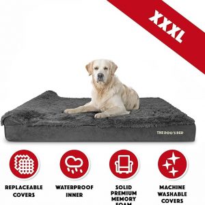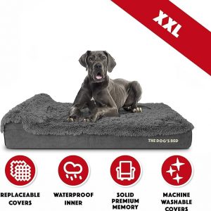 The Dog’s Bed Orthopedic Headrest Dog Bed XXL Grey Fur 54×36, Memory Foam, Pain Relief: Arthritis, Hip & Elbow Dysplasia, Post Surgery, Lameness, Veterinary Approved, Waterproof Washable Cover