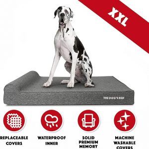 The Dog’s Bed Orthopedic Headrest Dog Bed XXXL Grey Linen 64×44, Memory Foam, Pain Relief for Arthritis, Hip & Elbow Dysplasia, Post Surgery, Lameness, Veterinary Approved, Waterproof Washable Cover