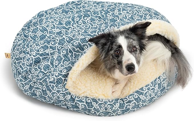 • LIKE A HUG FOR YOUR DOG! Is your dog a cuddler? A burrower? The Cozy Cave dog bed is just what you’re looking for! The hooded dog bed design lets your dog snooze between layers of soft Sherpa lining for enveloped comfort and coziness. Made to appeal to a dog’s natural instincts for burrowing, the Cozy Cave is the best dog bed for dogs who love sleeping under blankets. The Cozy Cave gives them a place to relax with a feeling of safety and security for less anxiety and more restful sleep.